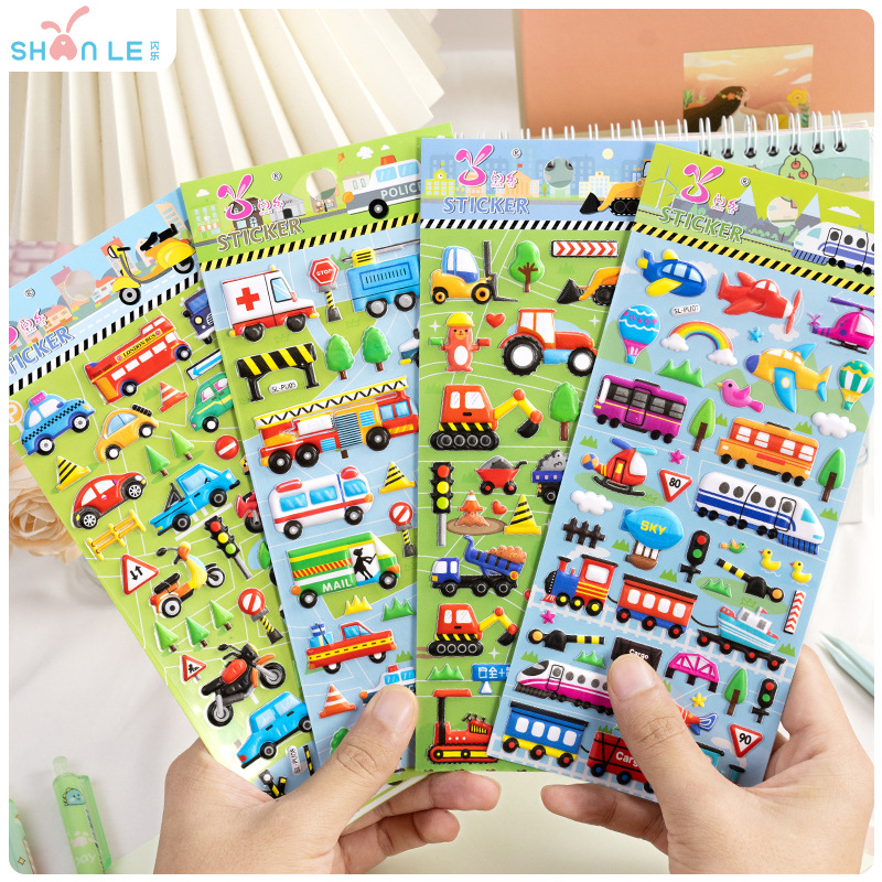 3D 漫画車交通エンジニアリング車両子供のステッカー男の子のご褒美教育ステッカー手作り装飾ステッカー