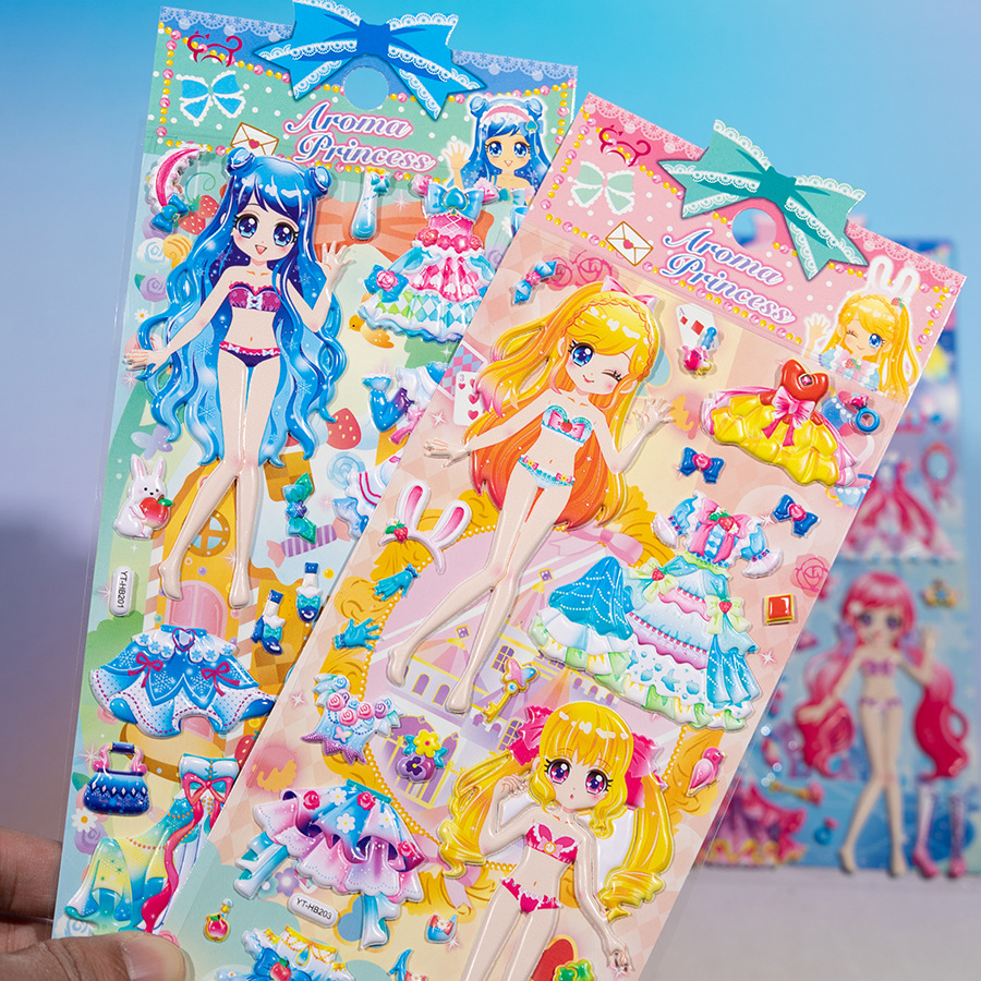 ロングヘアリトルプリンセスガールドレスアップ立体子供用ステッカーガールパズル早期教育ご褒美手作りおもちゃステッカー