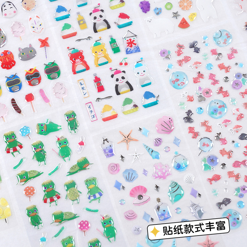 夏祭り日本の立体クリスタルステッカー金魚モンスター川子供ごほうびステッカー女の子手作り装飾ステッカー