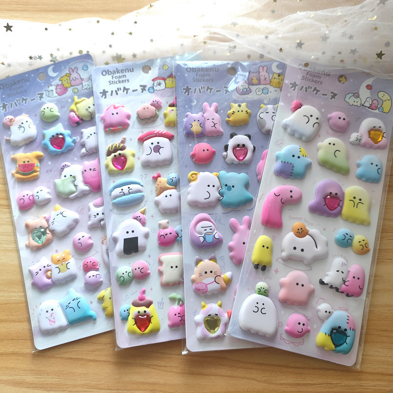 3D立体的な厚みのある幽霊家族ステッカー、かわいい小さな幽霊の子供向け漫画の手作り教育報酬装飾ステッカー