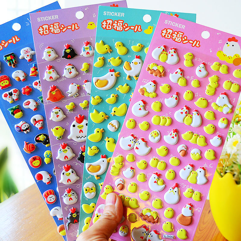 日本の小さな鶏のステッカー 立体的な幸運を呼ぶ漫画風のかわいい動物 子供へのご褒美ステッカー 赤ちゃんの写真アルバムや日記のデコレーション