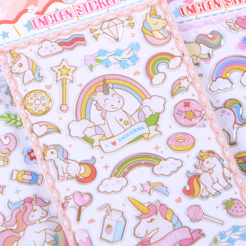 立体水晶ユニコーン虹小飛馬子供漫画手作りシール赤ちゃん日記アルバム装飾ステッカー