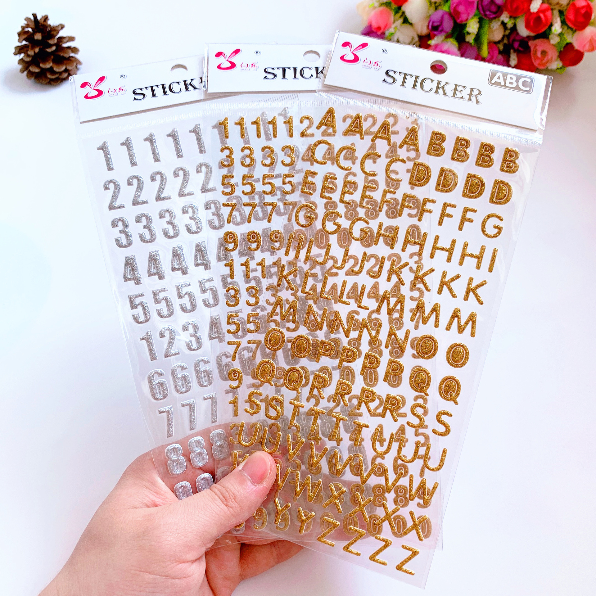3D 立体ブロンズ英数字ステッカー子供の英語早期教育報酬ステッカー赤ちゃん教育手作り装飾ステッカー