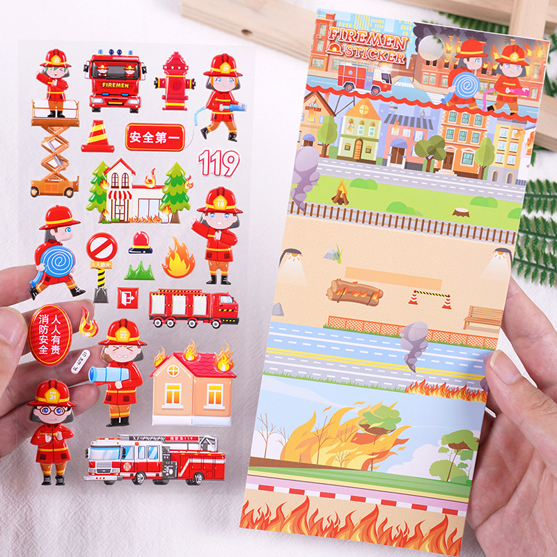 立体泡綿火災消防救命士児童シール早教益智手作りシール幼稚園奨励シール