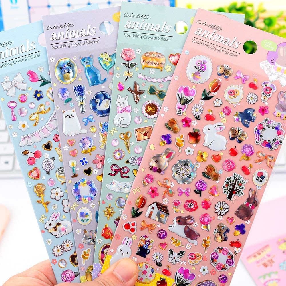 日系レトロ小動物ウサギ猫水晶立体子供シール益智手作り奨励アルバム装飾シール