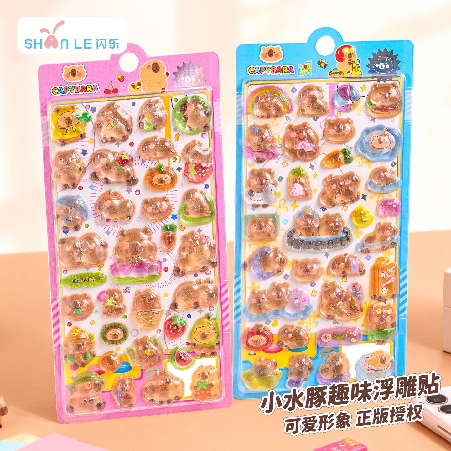 3Dカピバラ浮き彫りステッカー クリスタル立体可愛い動物カピバラ 子供向け手作り知育報酬デコレーションステッカー
