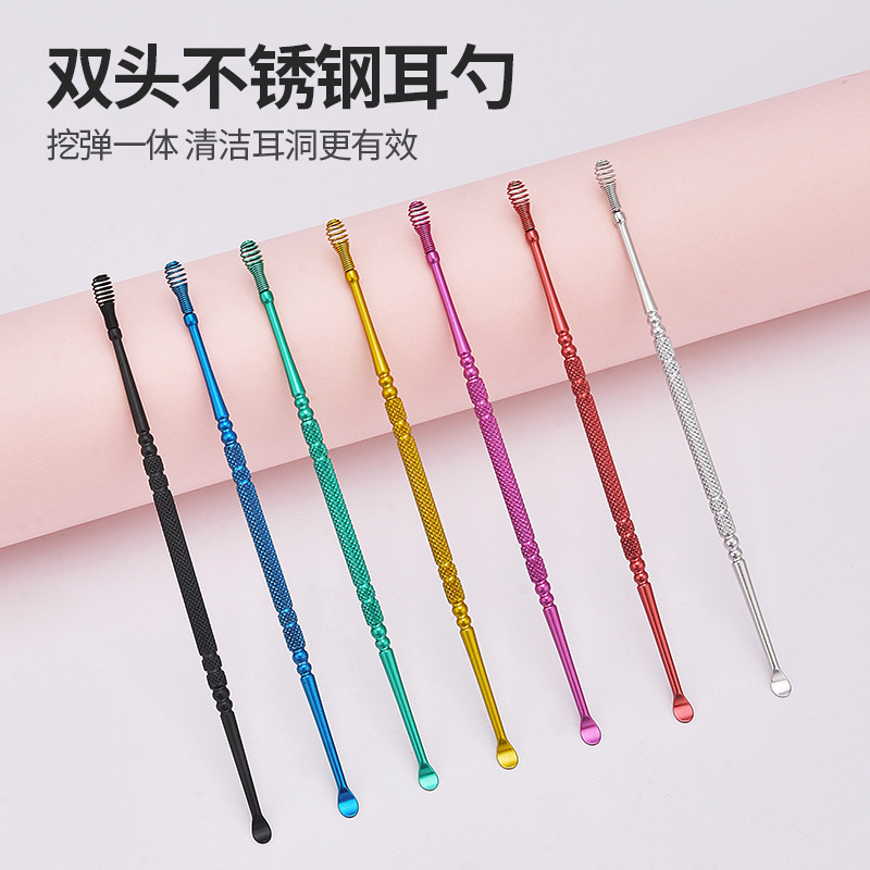 高級カラーのダブルヘッドの花のスプリングは耳のスプーンの螺旋のスプリングを掘って耳のスプーンの耳を掘って耳の清潔なツールの卸売りを採取します。