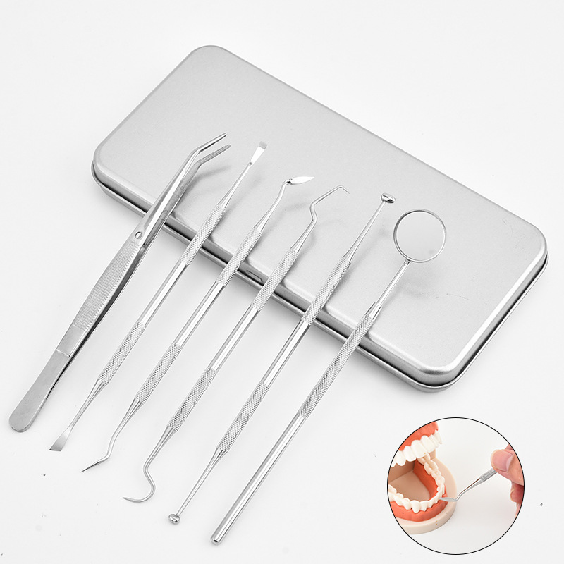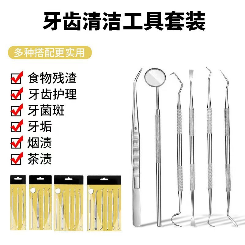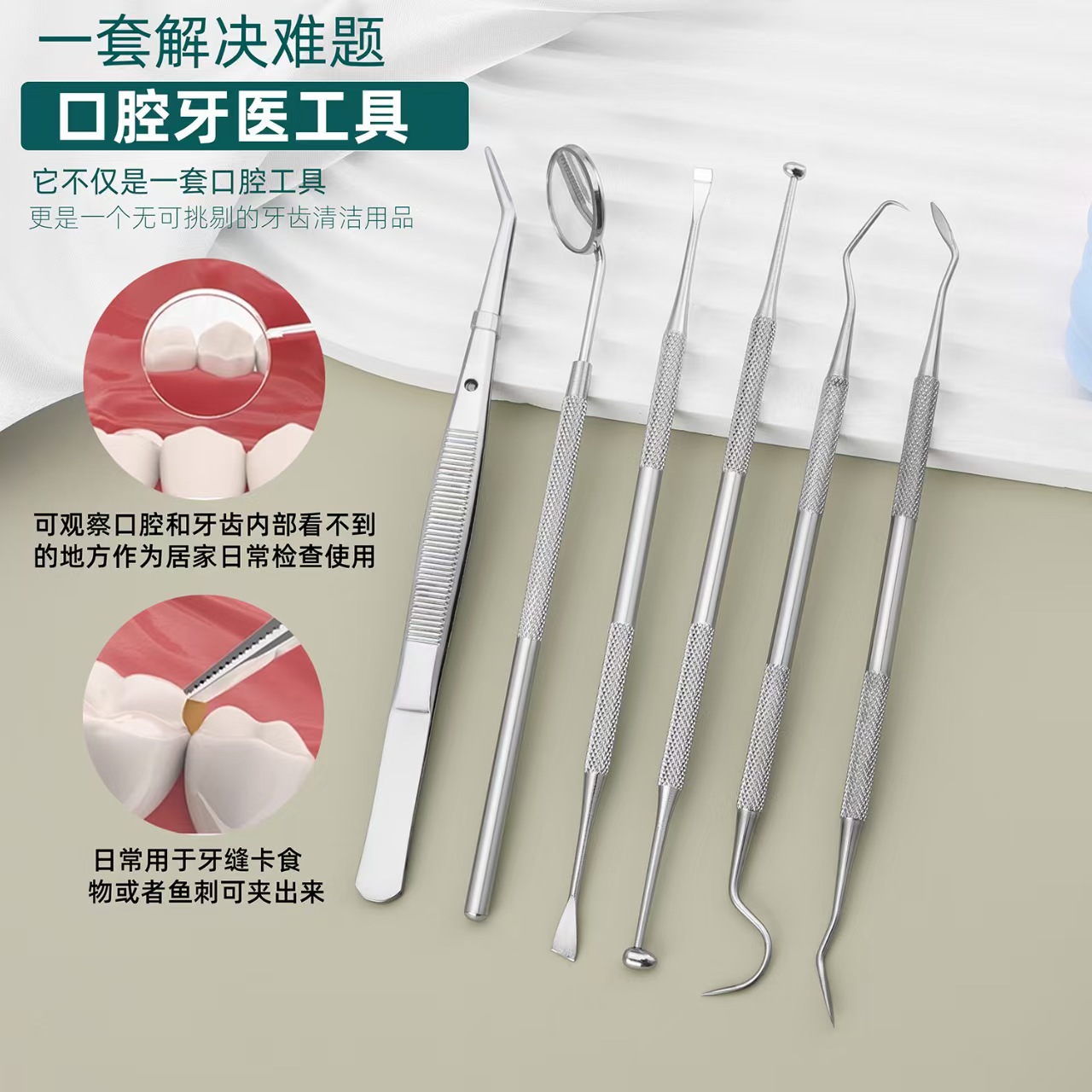 オーラルケアツール6点セット、歯石汚れ除去用歯摘みプローブ、口腔鏡、多機能クリーニングツール