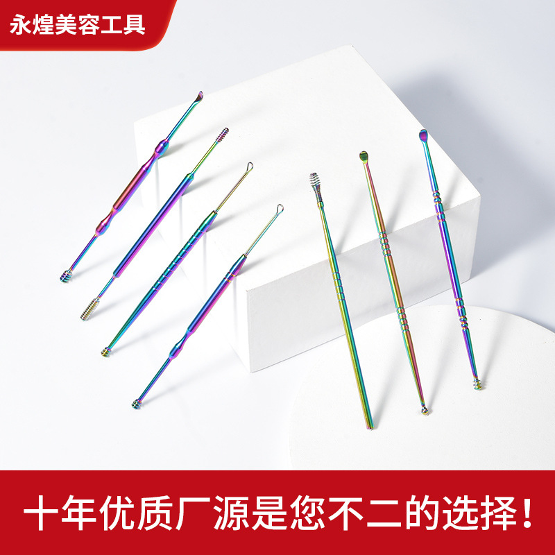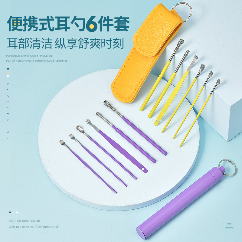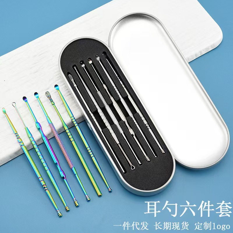 メーカー直接供給耳かきスプーン耳かきアーティファクトステンレス鋼カラーチタン 6 ピースカードスロットボックス耳スプーンセットポータブルストレージ
