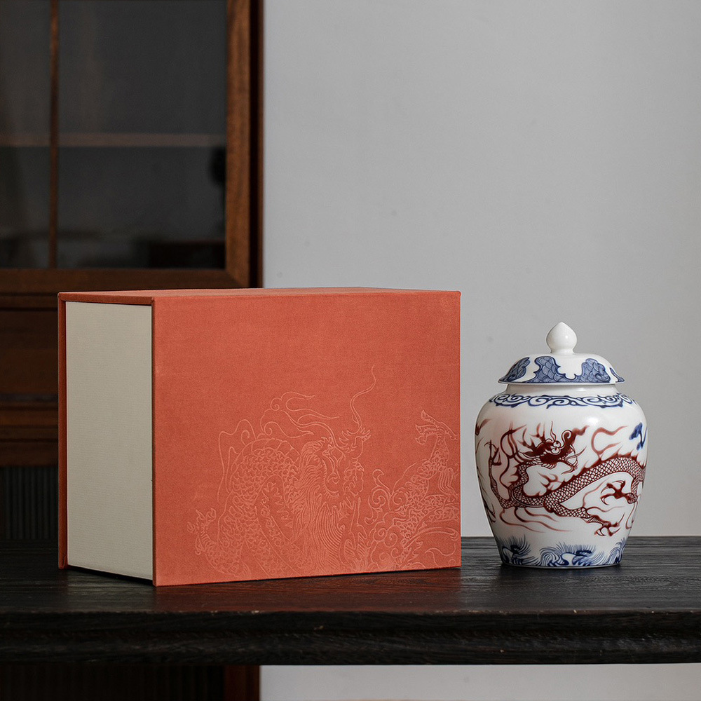 茶葉包装は雲龍釉里紅陶磁器礼箱単陶半斤双陶一斤高級花蜜香金駿眉