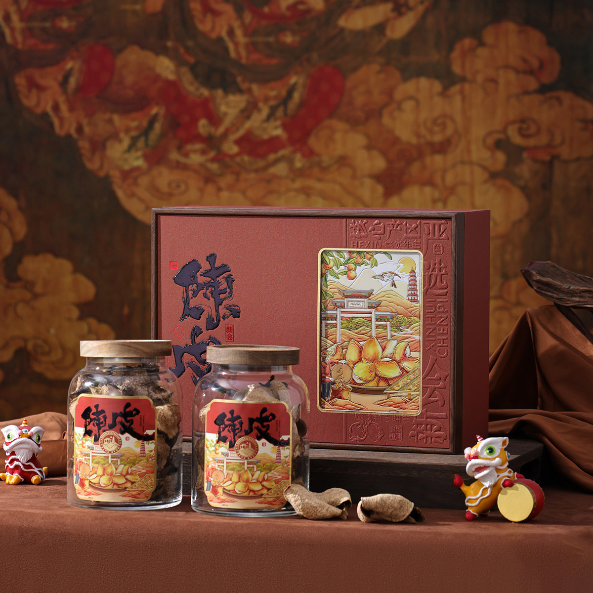 茶葉包装古韻2025項新会陳皮双ガラス瓶密封缶200グラム礼箱空箱ハイエンド