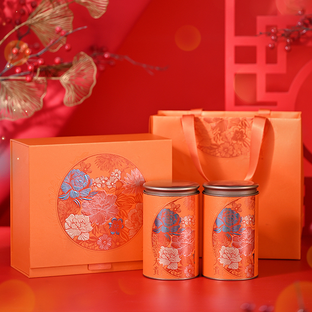 茶葉包装大富大貴二円缶ギフトボックスお祝い国潮牡丹ロゴデザインレーザーUV高効率出荷