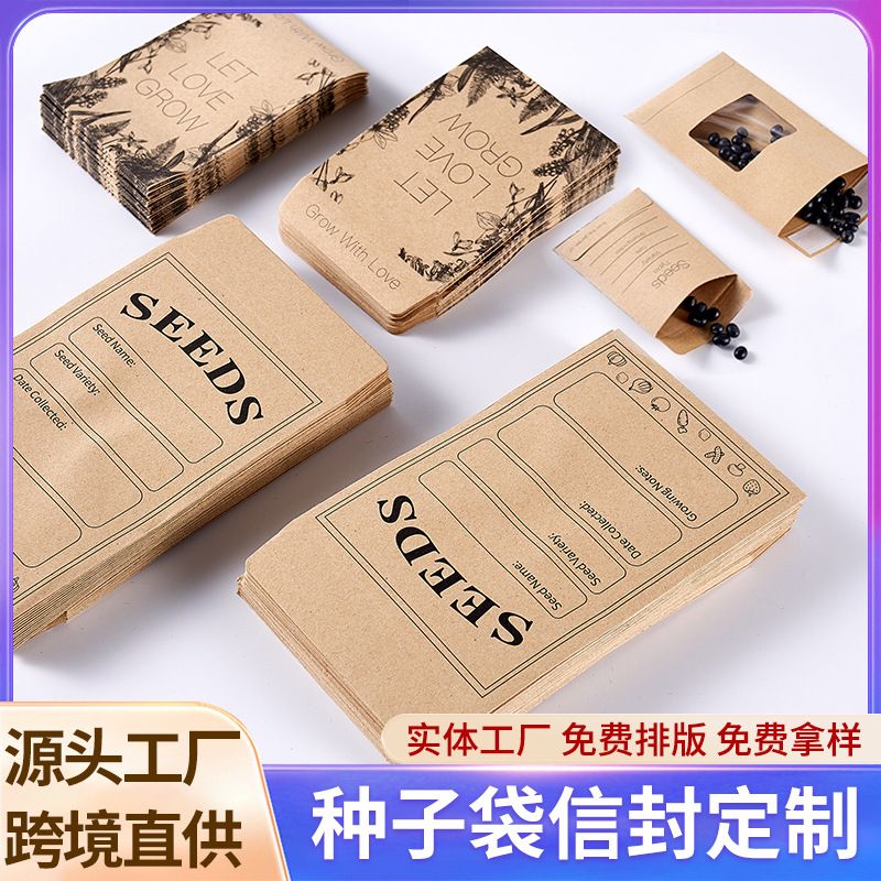 国境を越えたカスタム透明窓シール小型自己接着クラフト紙種子封筒育種袋サンプル袋カスタムバッチ