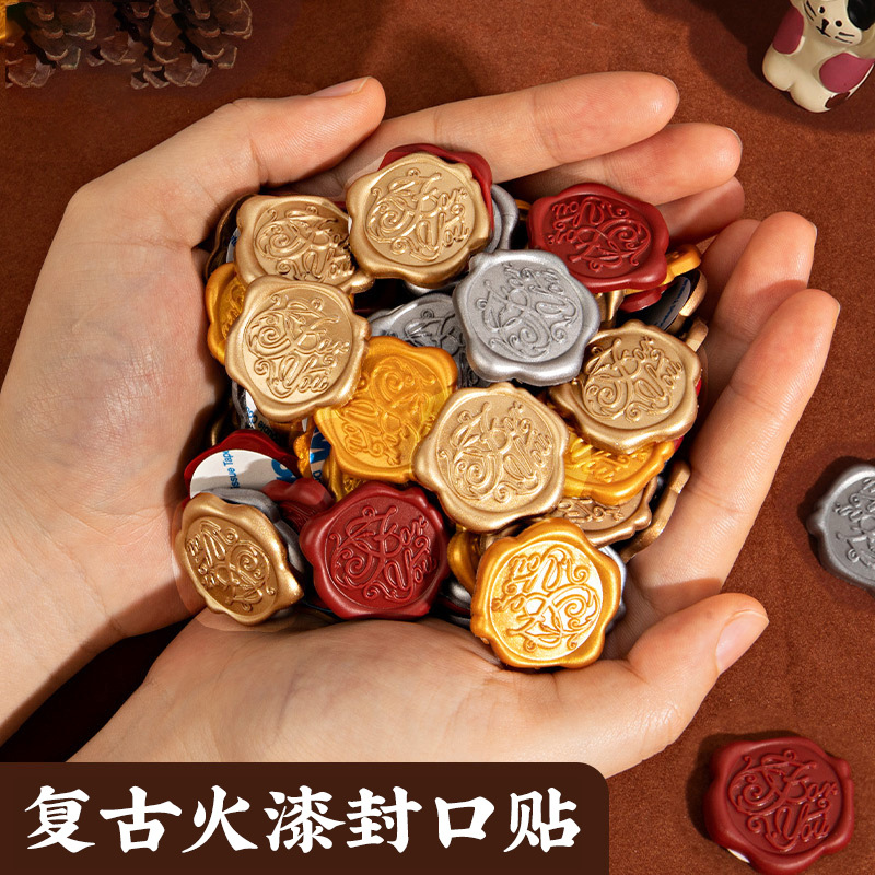 ファイアペイントシールワックスラベル立体ステッカー封筒シールステッカーレトロスタイル装飾招待状自己粘着結婚式招待状