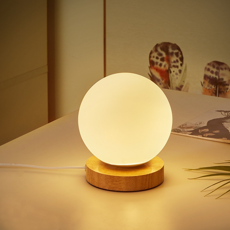 現代のシンプルなベッドサイドランプの丸みを帯びた形の北欧の寝室のリビングルームの書斎の実木insの少女の装飾の電気スタンド