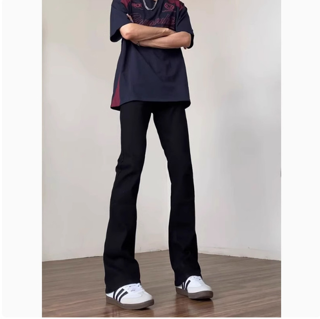 クリーンフィット シミタージーンズ ブラック ハイウエスト マイクロフレアパンツ メンズ アメリカンバイブスタイル ハイストリート スリムストレートパンツ