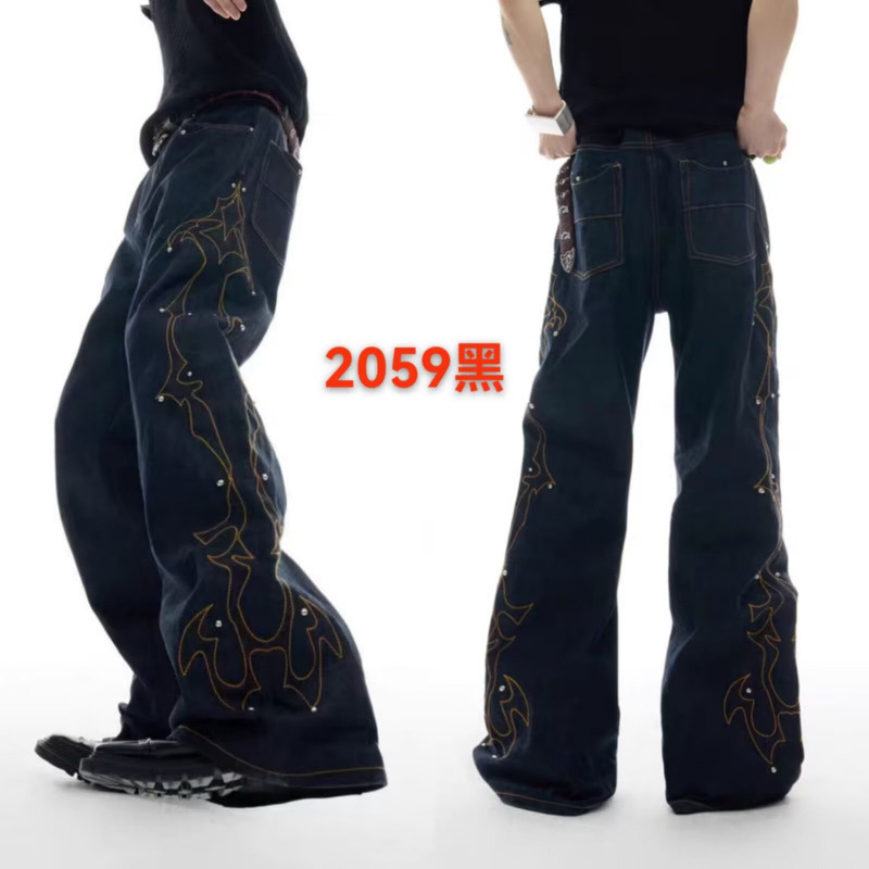 アメリカンハイストリートバイブ柳の葉スモールソードジーンズメンズ春スリムブラックパンツハイウエストスリムパンツ