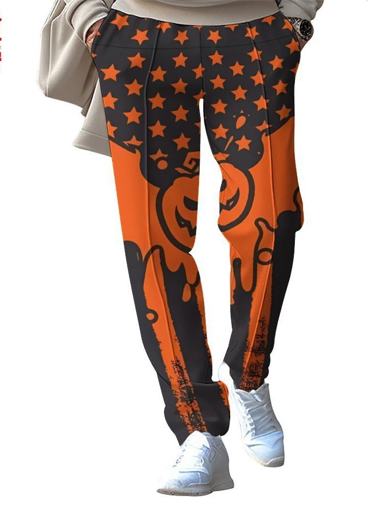 2024独立駅ハロウィーン春秋紳士服ファッションカジュアル外出3dプリントゆるい閉鎖ロープストレートズボン