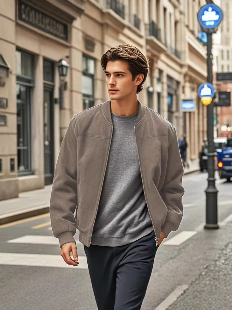 欧米コードアマゾン秋冬スエード立ち襟メンズジャケットカーディガン男性新型ファスナーカジュアル男性長袖