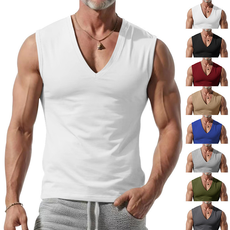 2024国境を越えた対外貿易夏の新型純色男性式ゆるい鶏心襟レジャー合体シンプルなスポーツベスト男性