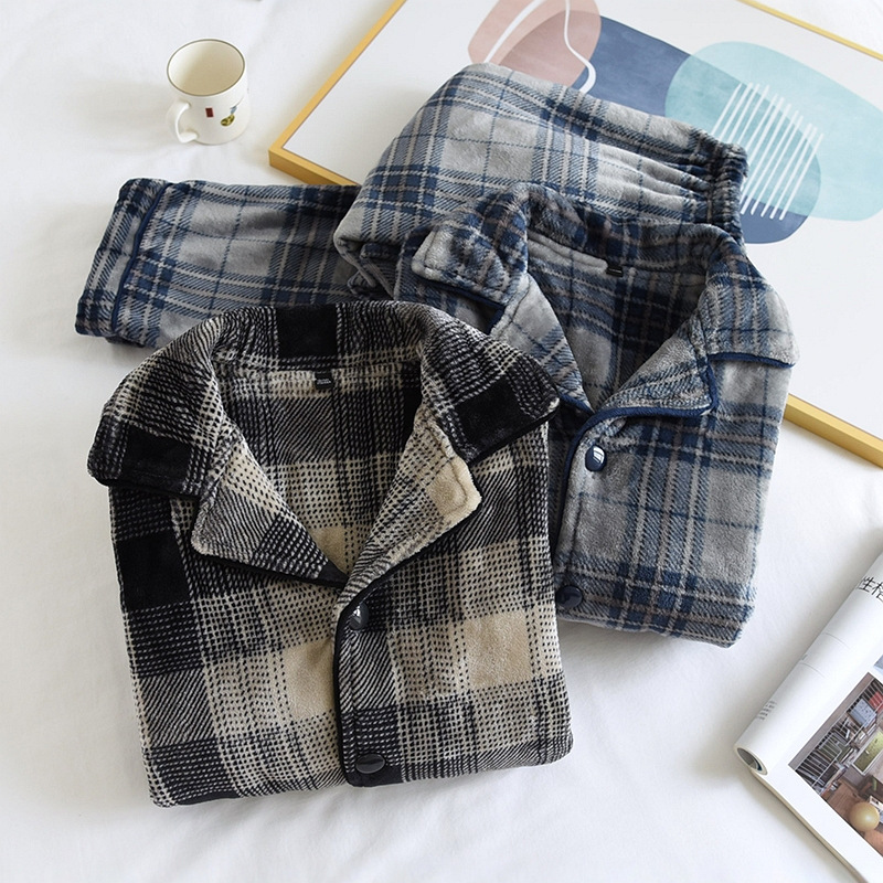 秋冬男性フランネルの家庭服は保温パジャマを厚くしています。