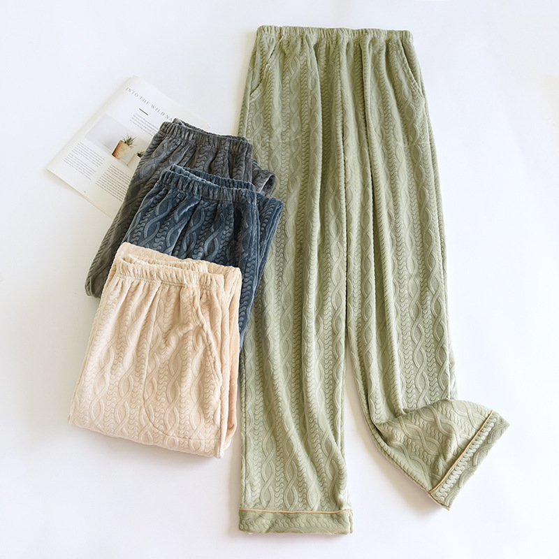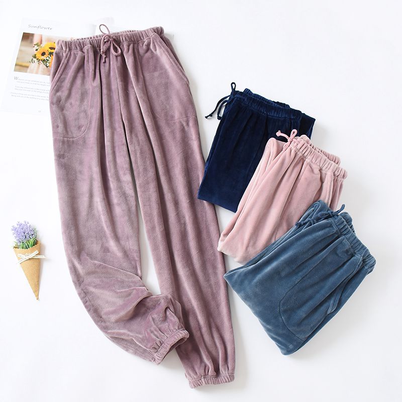 海島の絨毛の寝ズボンの女性の秋冬の純色の大きいサイズの薄い絨毛は厚いストレートのサンゴの絨毛のフランネルの家のズボンの暖かいズボンを厚くします。
