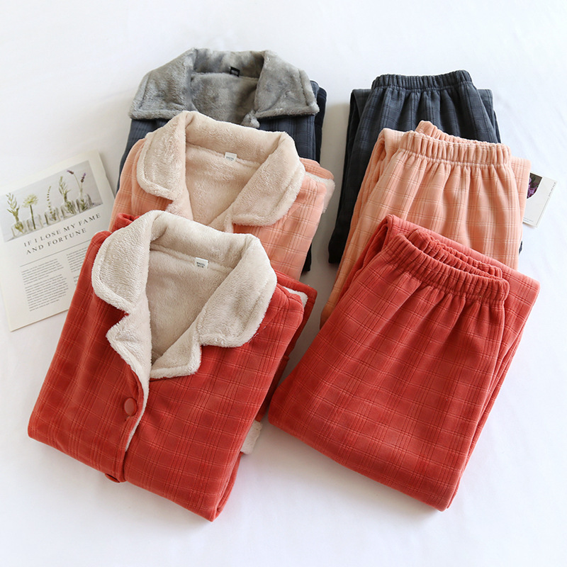 カップルのベルベットパジャマ男女秋冬に長袖のカーディガンを厚くしたフランネルの家服