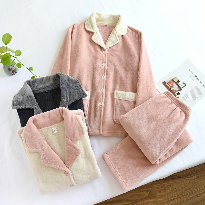 ベルベットパジャマ男女秋冬ベルベット厚手カップルスーツ新襟なし保温フランネル家庭服