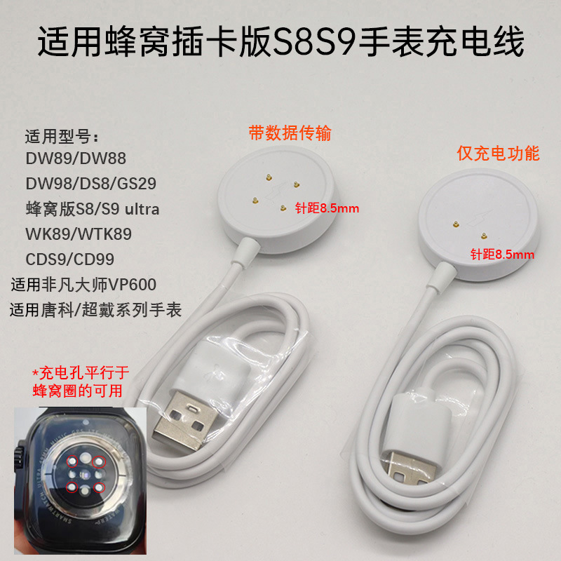 2ピンHuaqiangbeiセルラーバージョンDW89/88時計充電ケーブルS9Ultra/VP600充電器磁気吸引に適しています。
