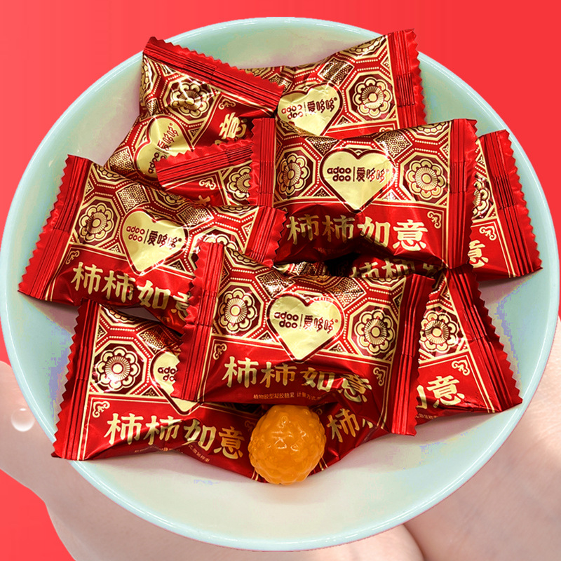 愛ドラえもん柿如意爆糊ジュースグミばら積喜糖卸売り婚約専用高級赤色おめでたい糖
