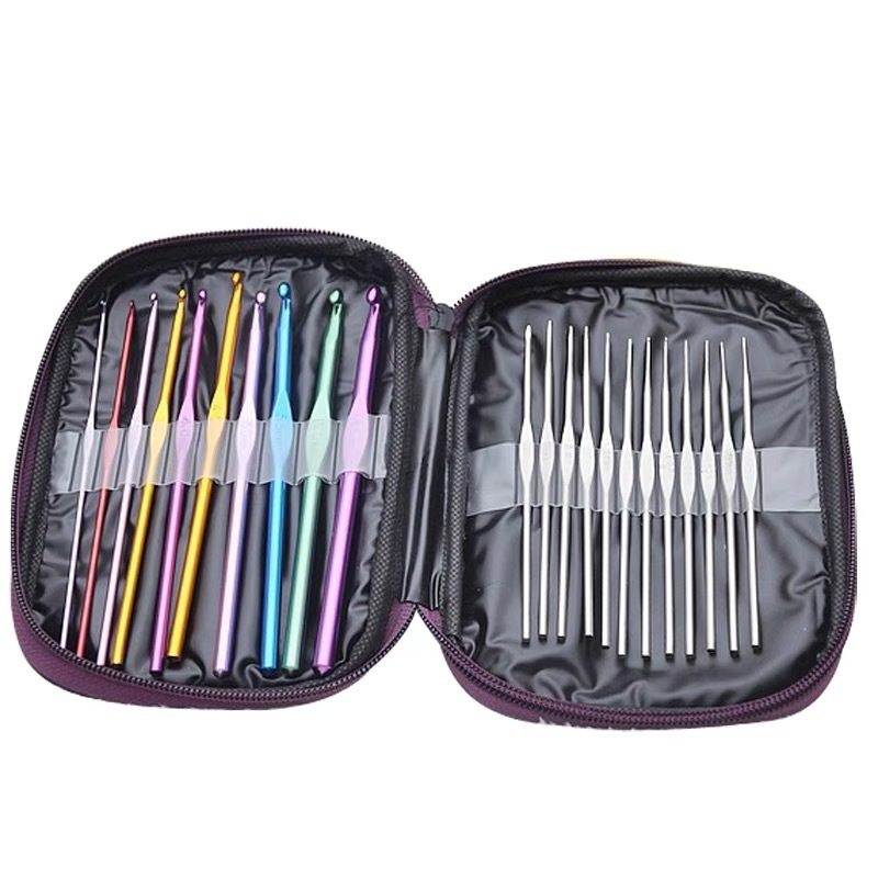 金属かぎ針セット22本紫バッグカラーアルミナ合金毛糸かぎ針セット卸売り