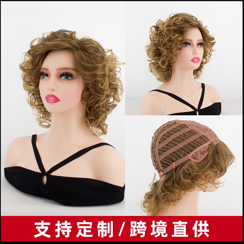 欧米のかつらの2色の色合わせは、短い髪の背中に巻きます。