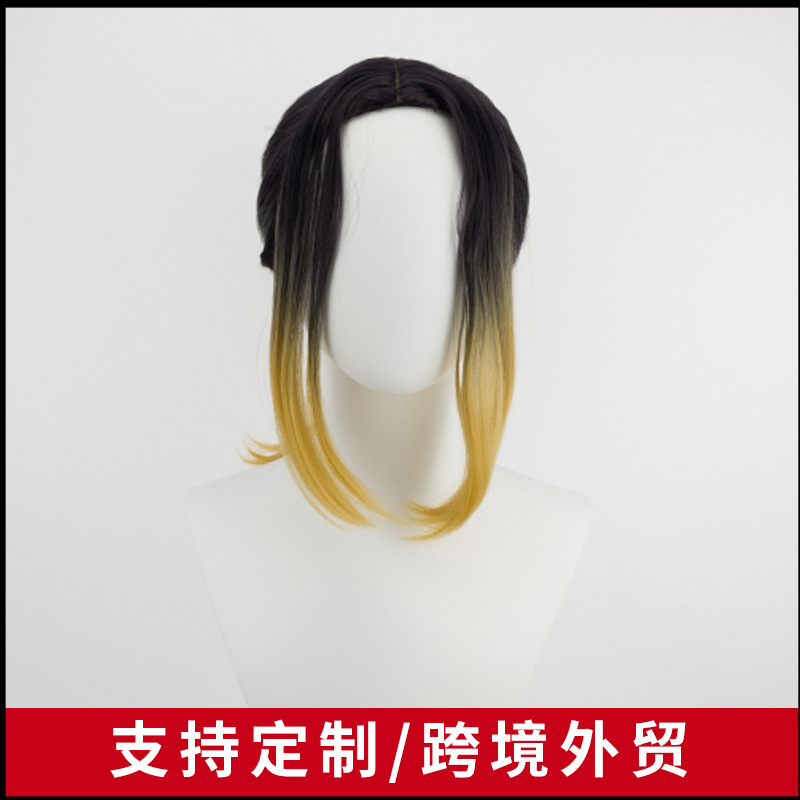 バレーボール少年成人版孤爪研磨cosかつらシミュレーション頭皮半結髪グラデーション高温糸かつら