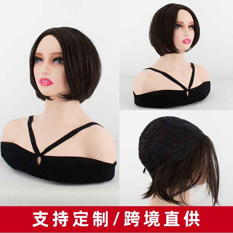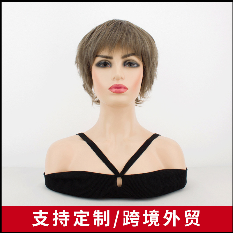 欧米のかつらアマゾンの女性のショートヘアの斜め前髪のふわふわした木目のショートヘアの高温糸の外国貿易のかつらの卸売り