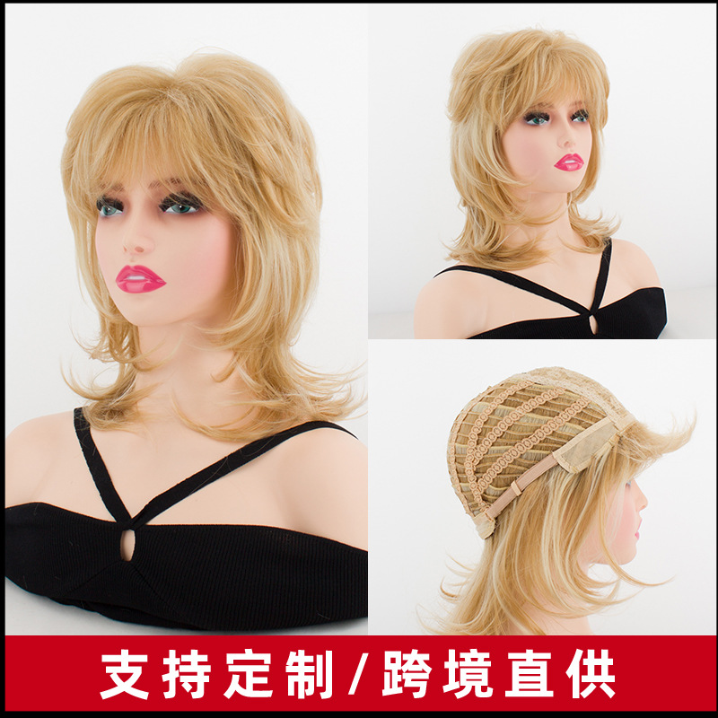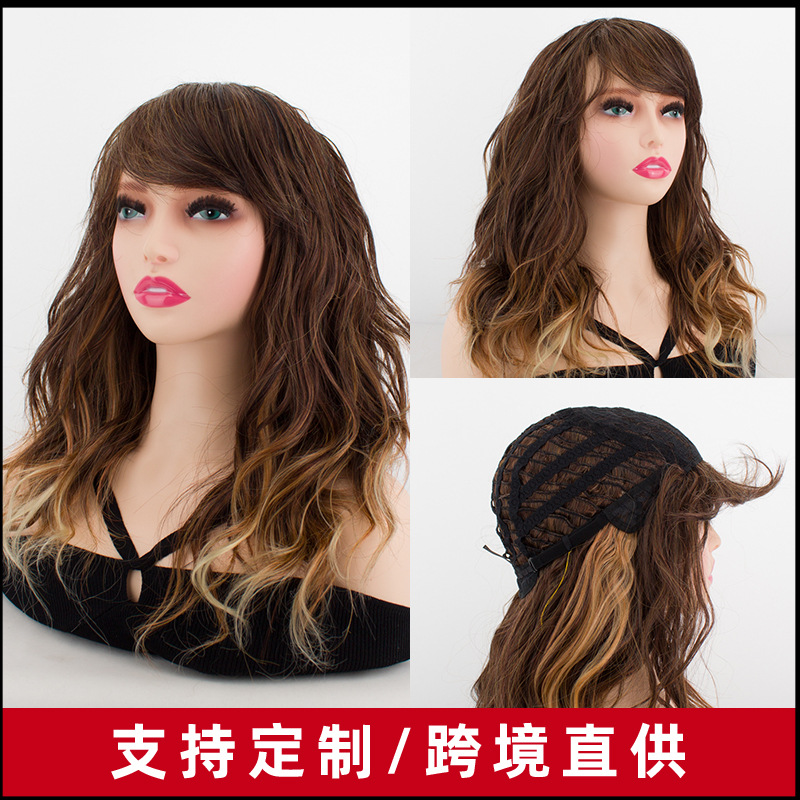 欧米のかつらのファッションの質感は金を選んで色のかつらを選んでふわふわしています。