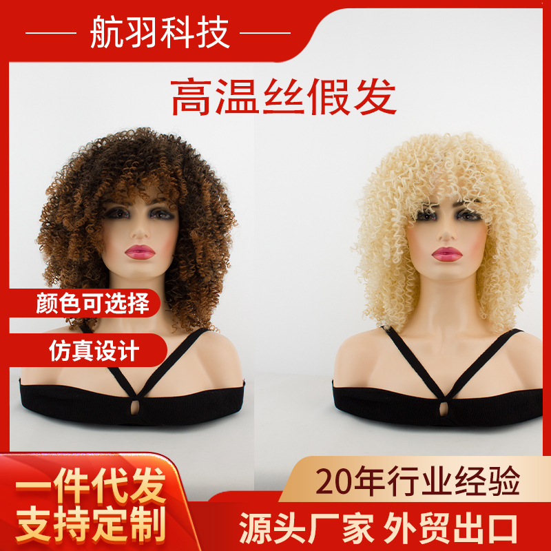 アフリカの小さい巻きのかつらの女性の対外貿易の金色のふわふわしている長い巻きの髪の毛が爆発します。