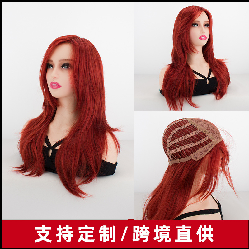 日韓のファッションの精巧な大きい波の微巻きのショールの長い髪のファッションの浅いワインの赤色の無頭皮の長い斜めの前髪のかつら