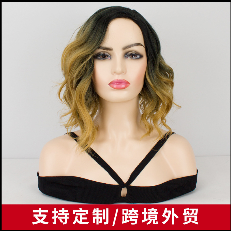 欧米のファッションかつらの混色は色を選んで精巧で長い斜めの前髪の金の中で短い髪の波の頭のふわふわしているかつらの頭のカバーを掛けます。