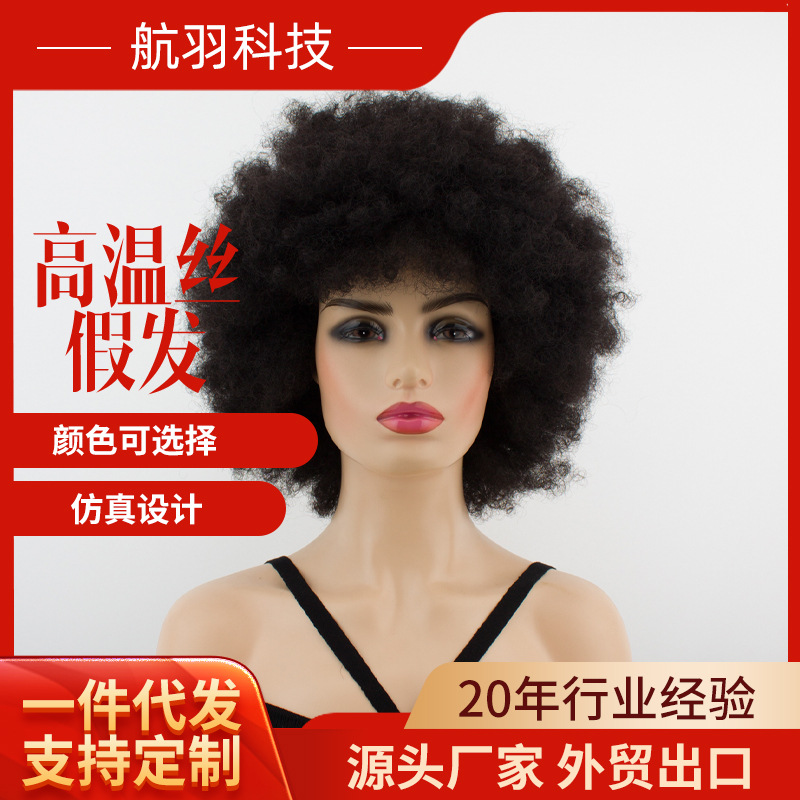 外国貿易のアフリカの小さい巻き髪のカバーの欧米のかつらのふわふわしている爆発の髪の化繊の髪の黒人の女性は頭がいっぱい熱いです。