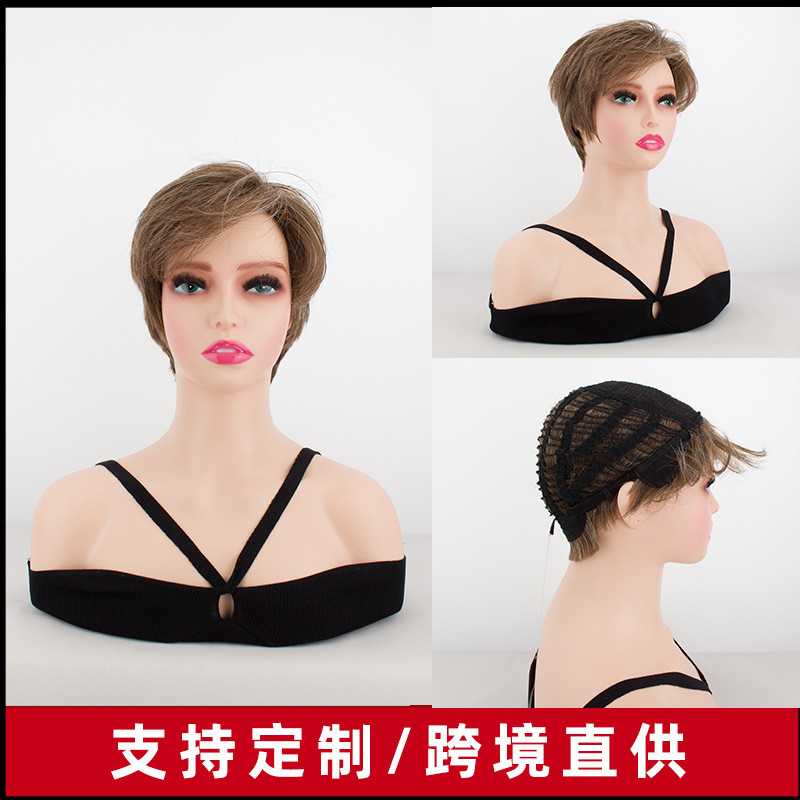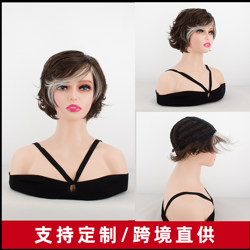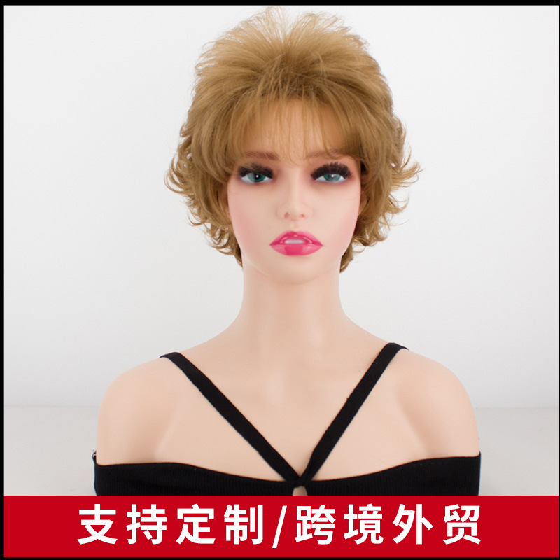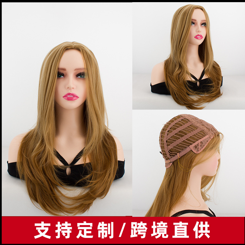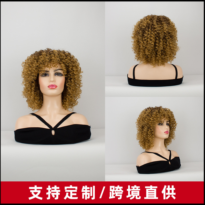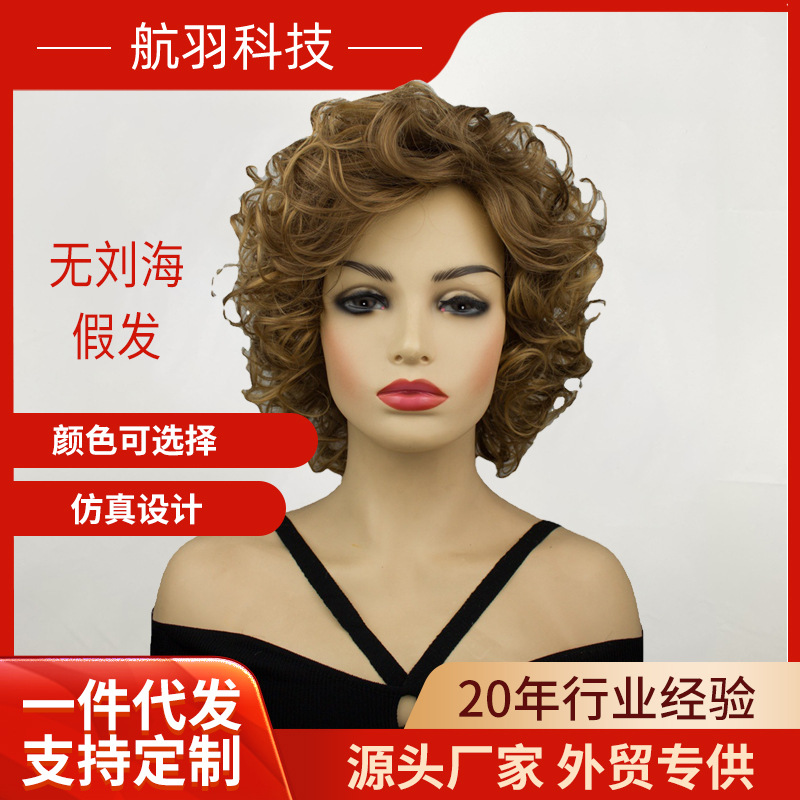 外国貿易茶色のカツラ欧米のファッション前髪のないカツラのマントがふわふわしています。