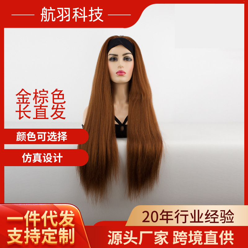 欧米のファッションかつらは洗練されたヘアバンドのヘッドバンドが一体的に顔の中に短い髪を掛けて金色の背中に前髪のかつらがない