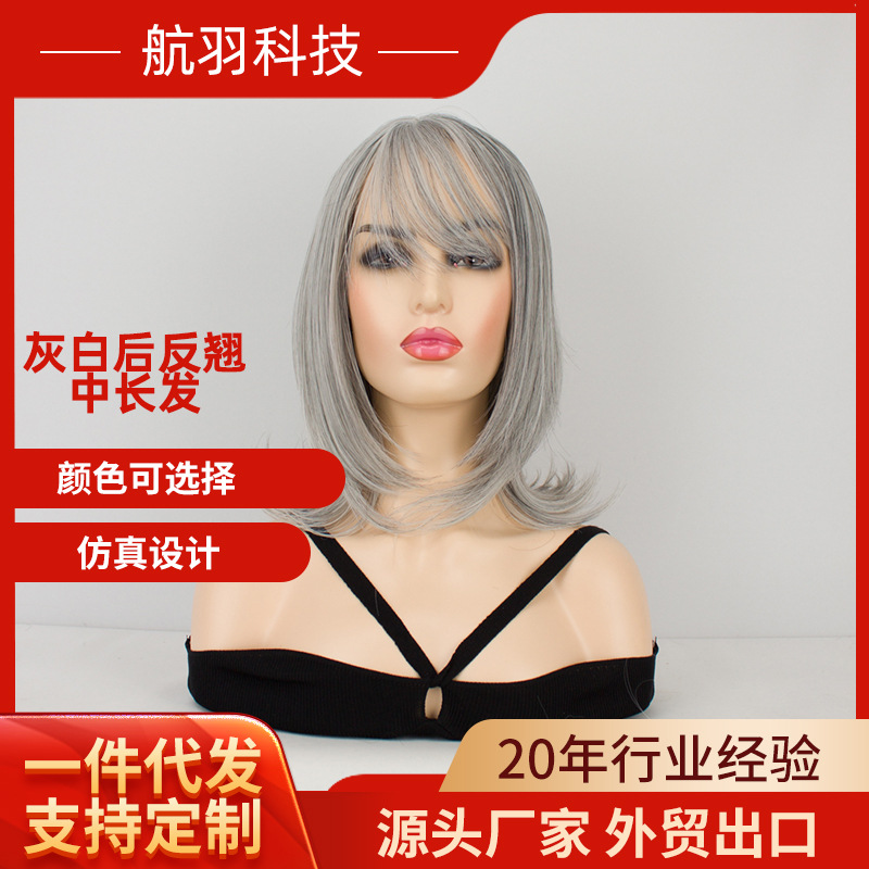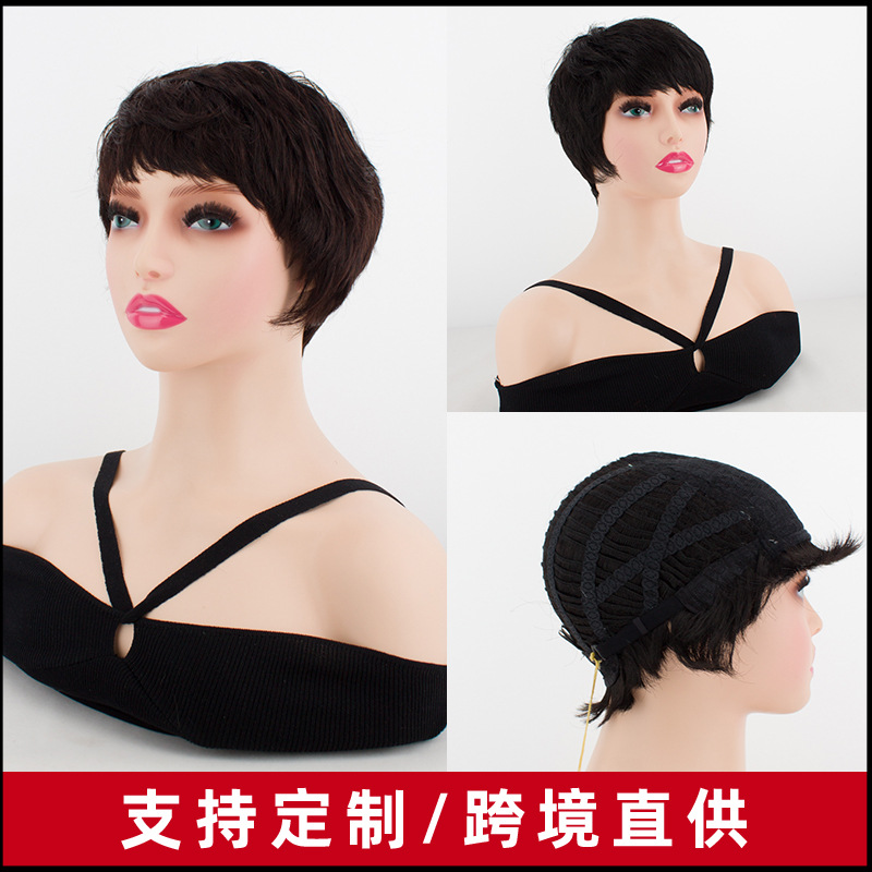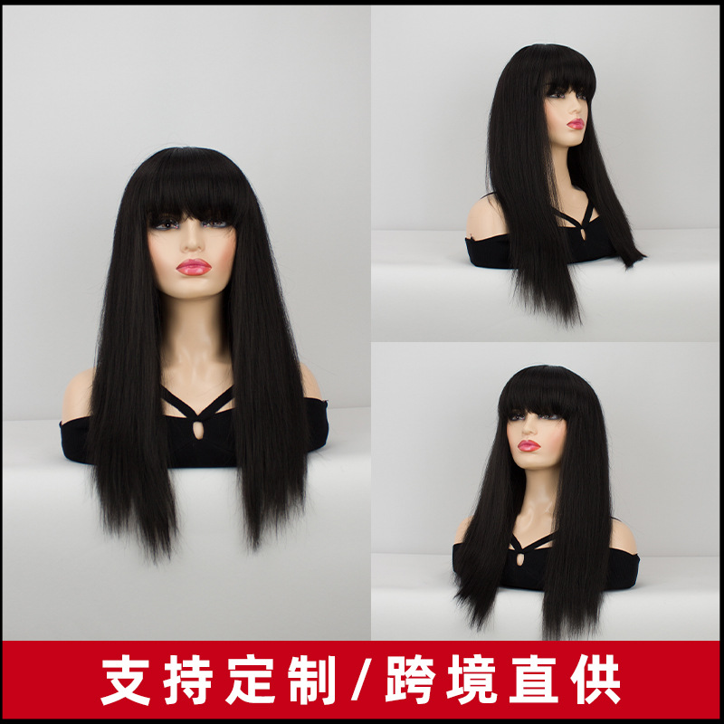 欧米のファッションかつらは劉海の黒いストレート髪をシミュレーションしています。