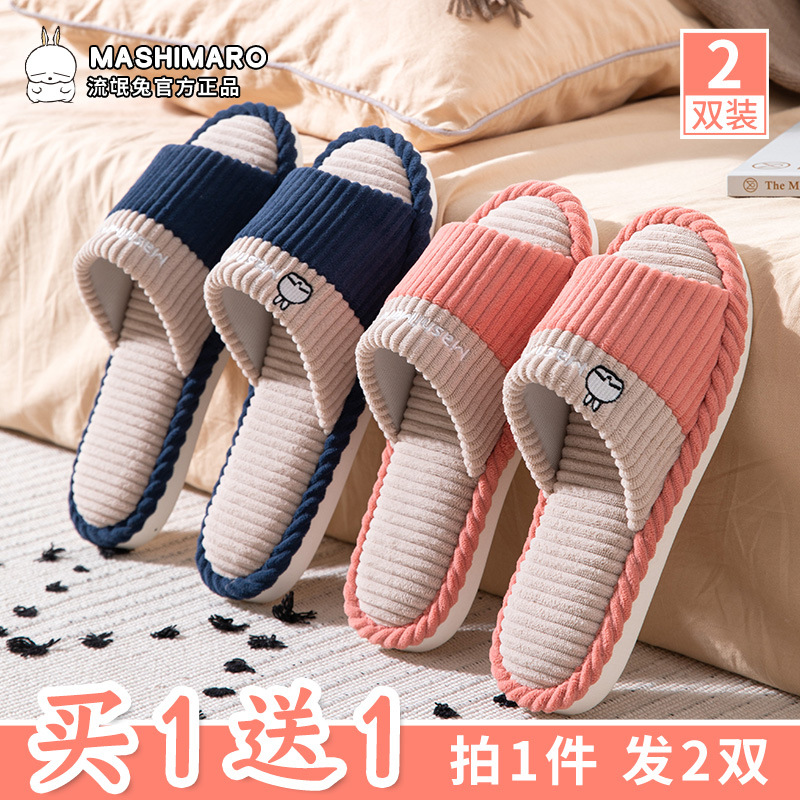 1 つ購入すると 1 つ無料のリネンスリッパ屋内春と秋のカップルホーム通気性滑り止め男性と女性の消臭屋内スリッパ