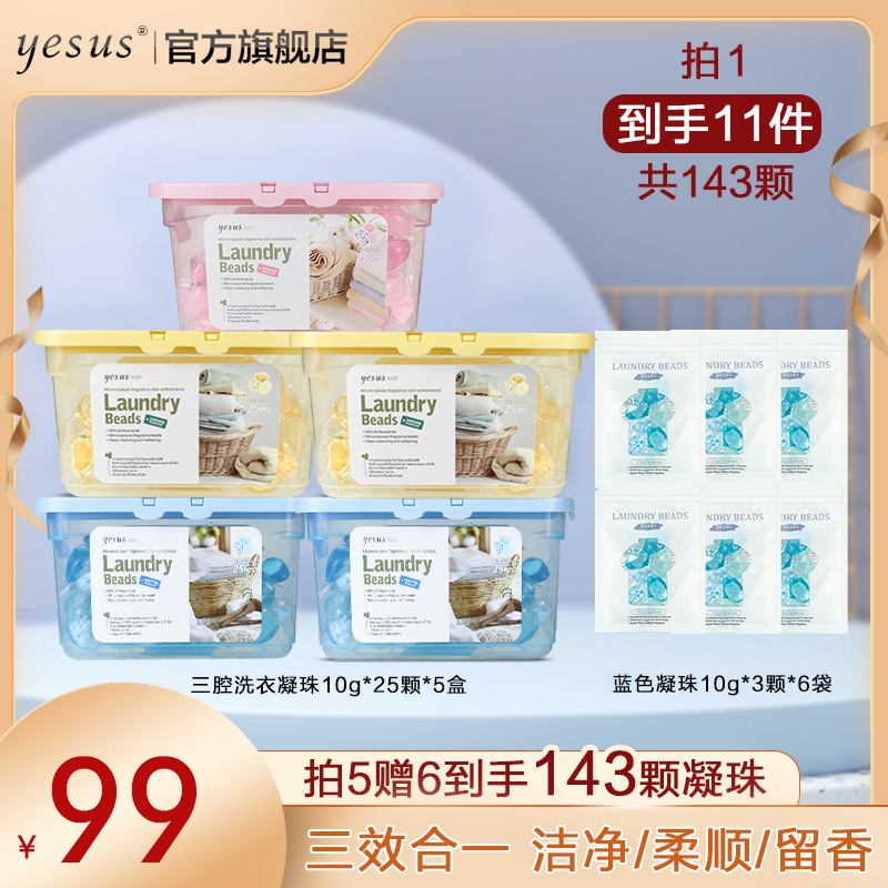 【5箱+6袋】タイ YESUS ランドリービーズ 3in1 除染・滑らか・香り長持ち・抗菌洗濯洗剤