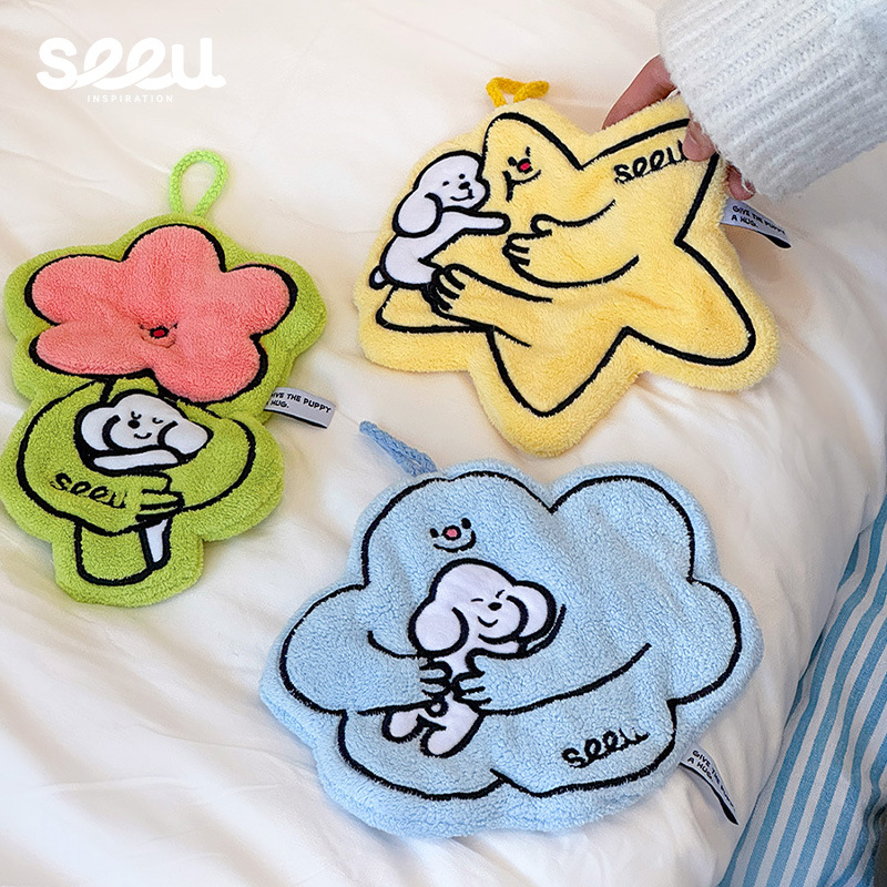 Seeu は美しいかわいいハンドタオル、ハンギングタオル、キッチンバスルーム吸収性布、漫画の厚い雑巾に陥ります。