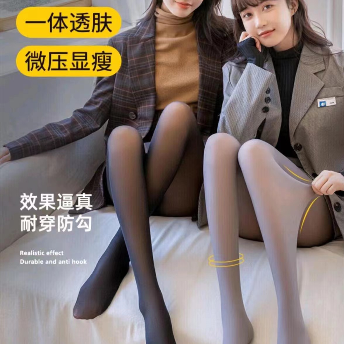 パンスト、素足加工品、冬用オールインワン半透明フェイクシースルー客室乗務員グレーベルベットレギンス、女性用アウターストッキング
