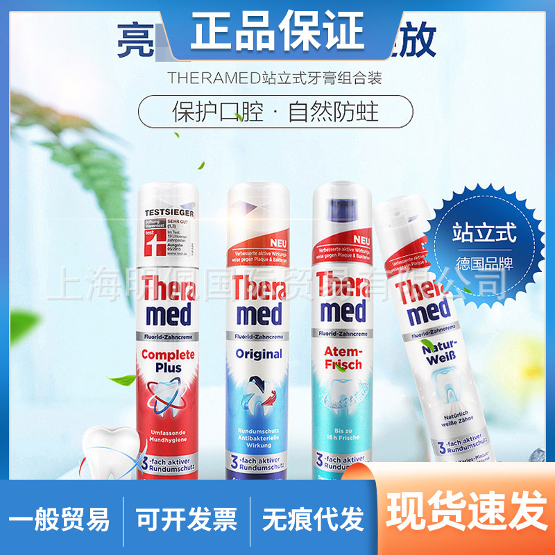 ドイツ輸入 Theramed ヘンケル スタンドプレス 大人用 フレッシュブレス歯磨き粉 4色 100ml
