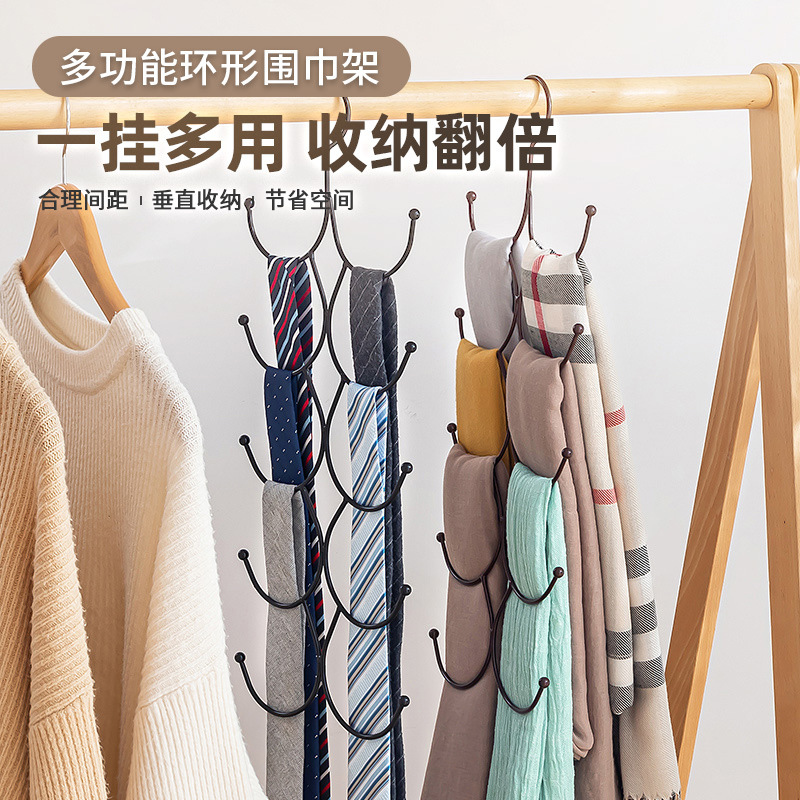 Fengquan 多層スカーフ収納ラック家庭用収納アーティファクトネクタイスカーフラックベルトストッキングハンガーリングハンガー
