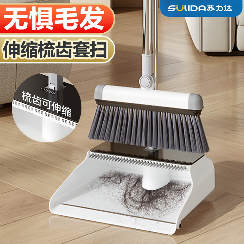 Sulida ほうき 2024 新しいちりとりセット家庭用大型掃除ノンスティックヘアほうき組み合わせアーティファクト