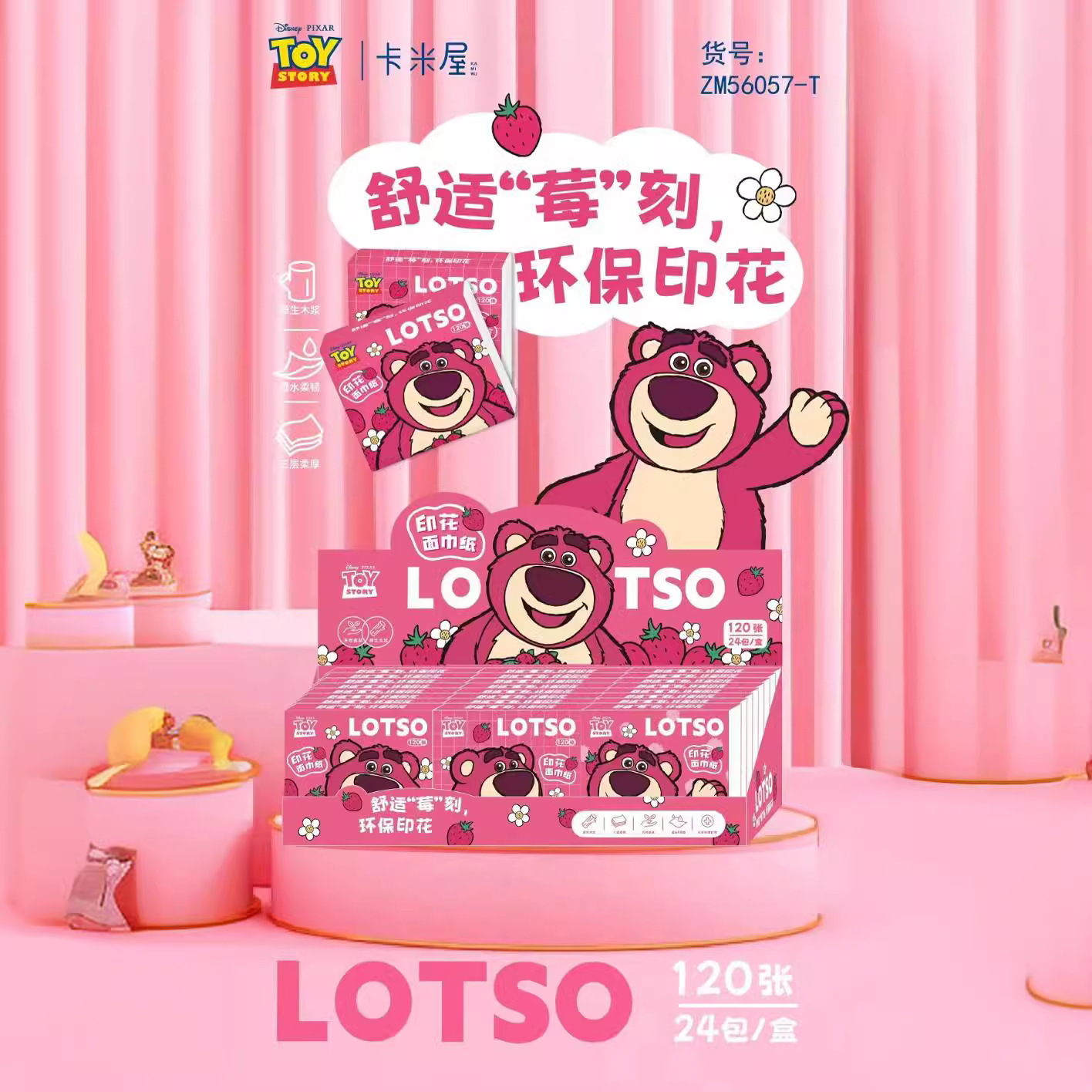 イチゴクマ漫画プリント紙家庭用トイレットペーパー小パックポータブルペーパータオル木材パルプナプキンフェイシャルティッシュ卸売